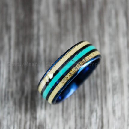 Blue Tungsten Bands with Deer Antler and Turquoise Inlay