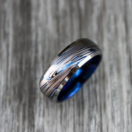 8MM BLACK TUNGSTEN BAND WITH BLUE STEP EDGE