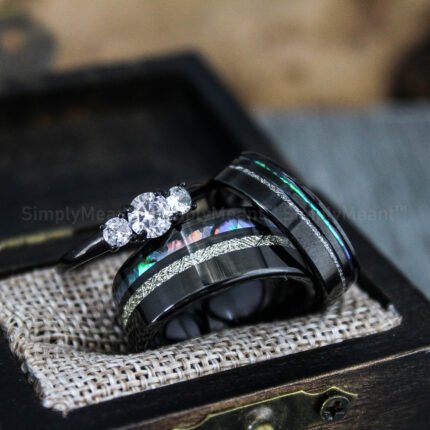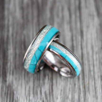 Meteorite Rings, Meteorite Wedding Bands, Silver Tungsten Bands with Meteorite Inlay